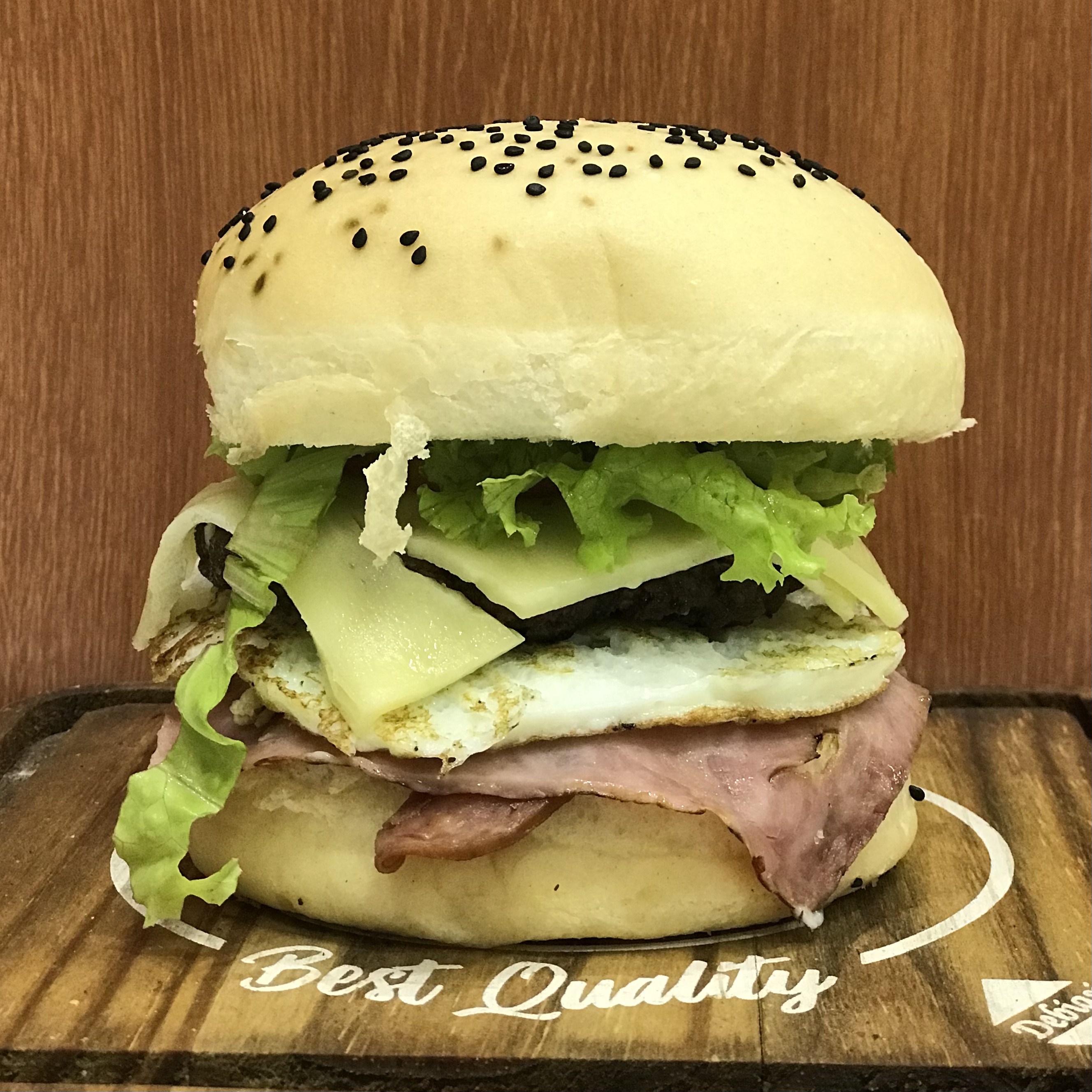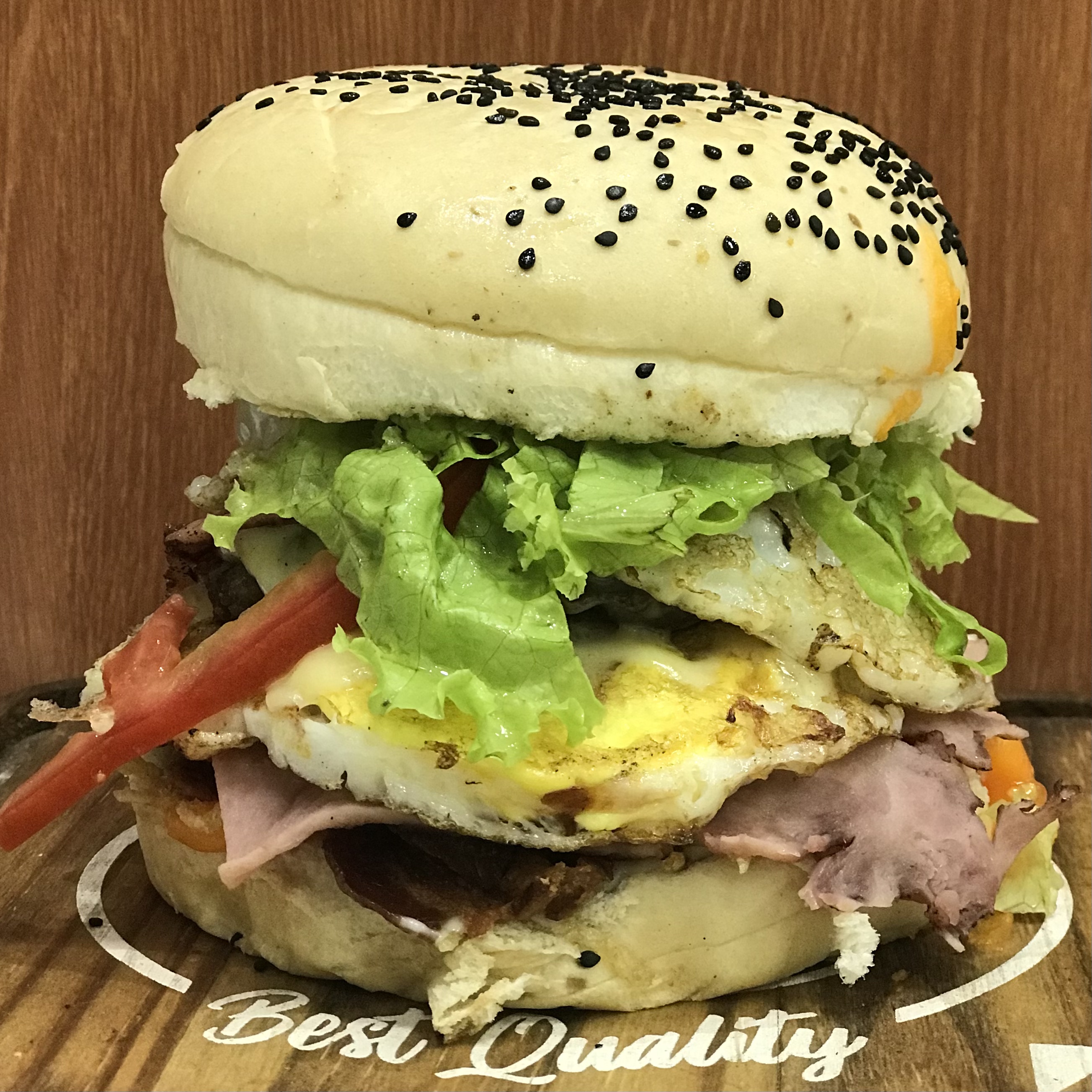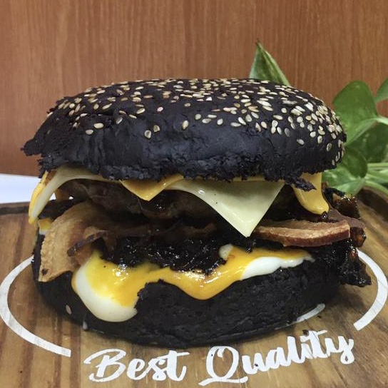 PÃO BLACK, MOLHO ESPECIAL, CEBOLA CARAMELIZADA, BACON, QUEIJO PRATA, BLEND DE CARNES SELECIONADAS, E MOLHO BARBECUE E QUEIJO CHADDER.