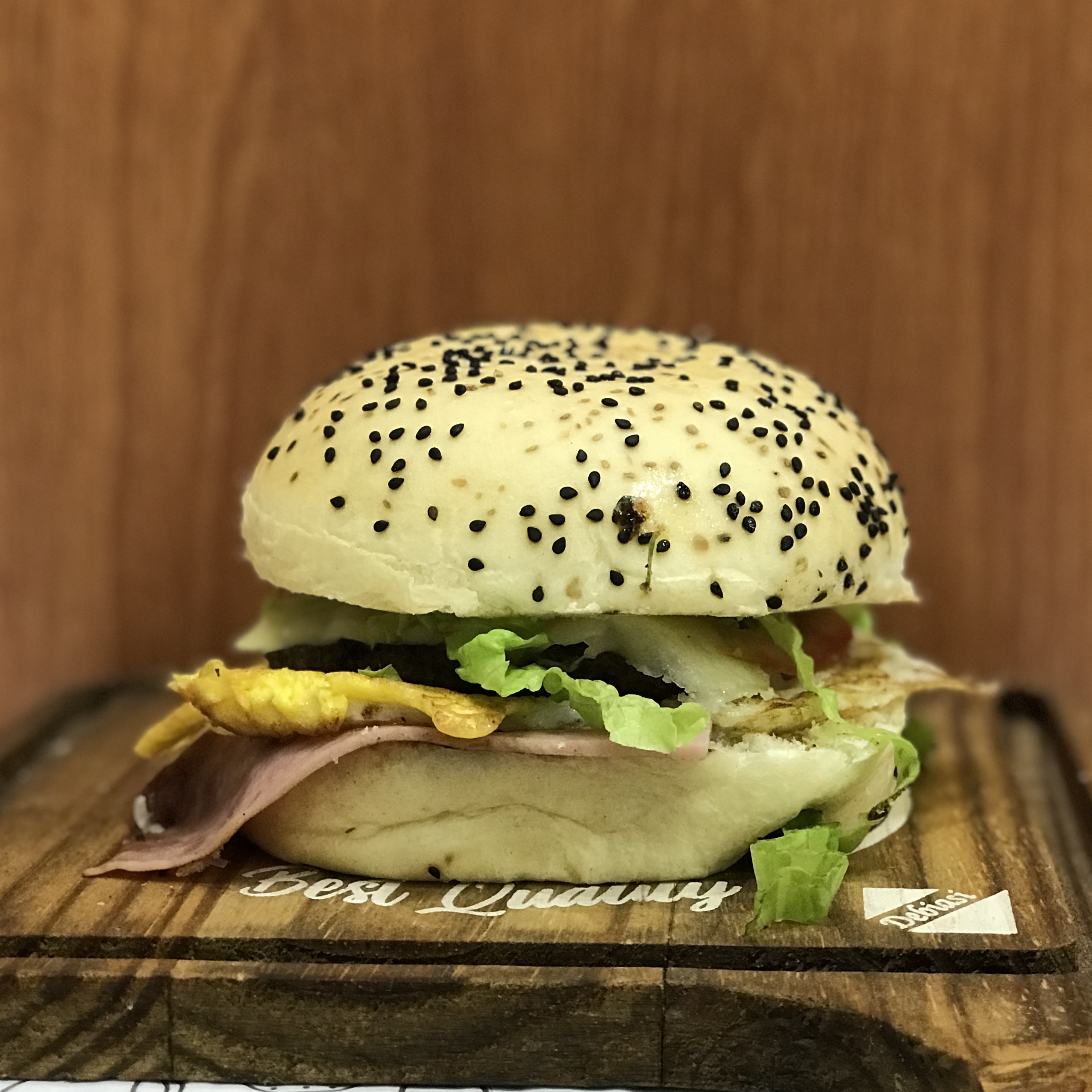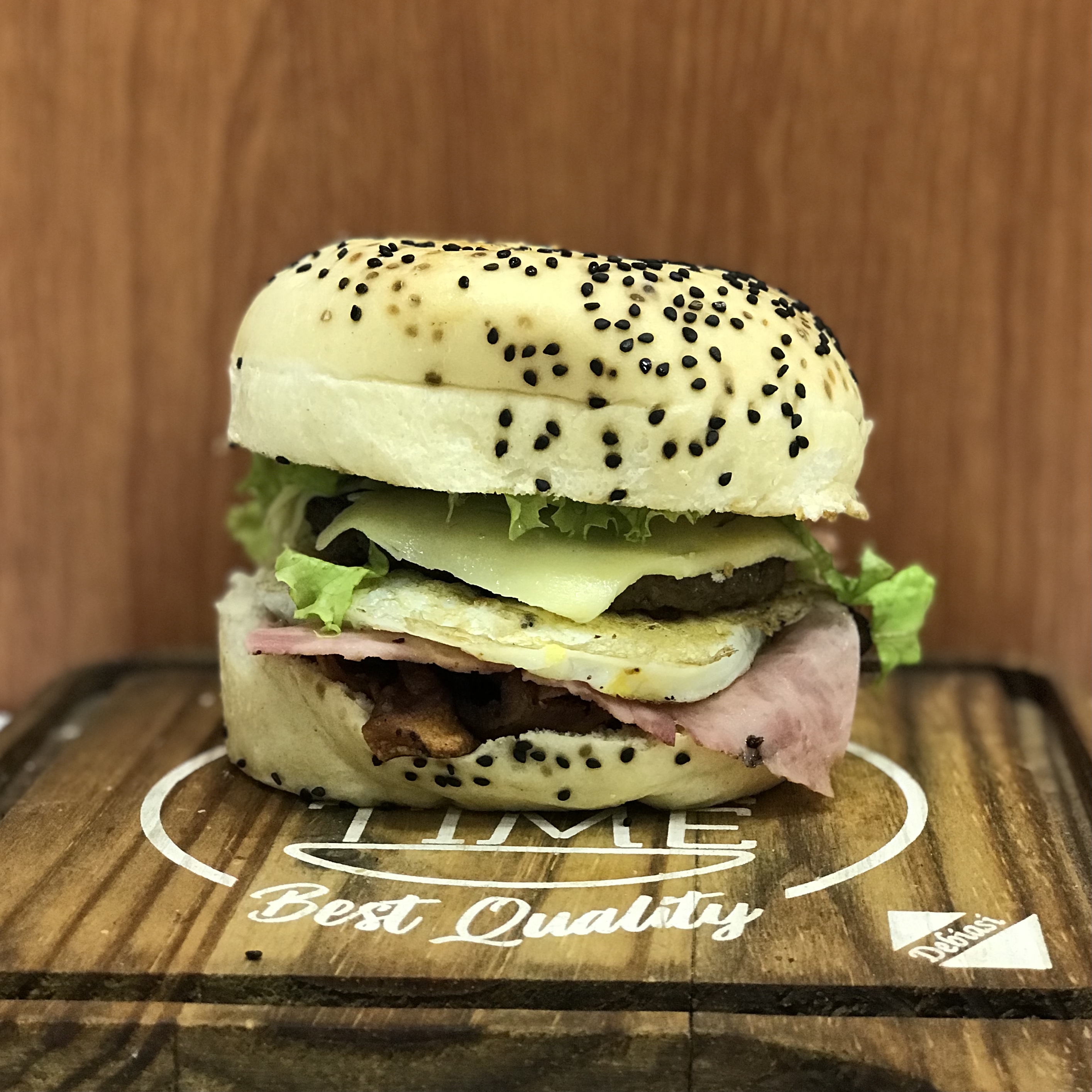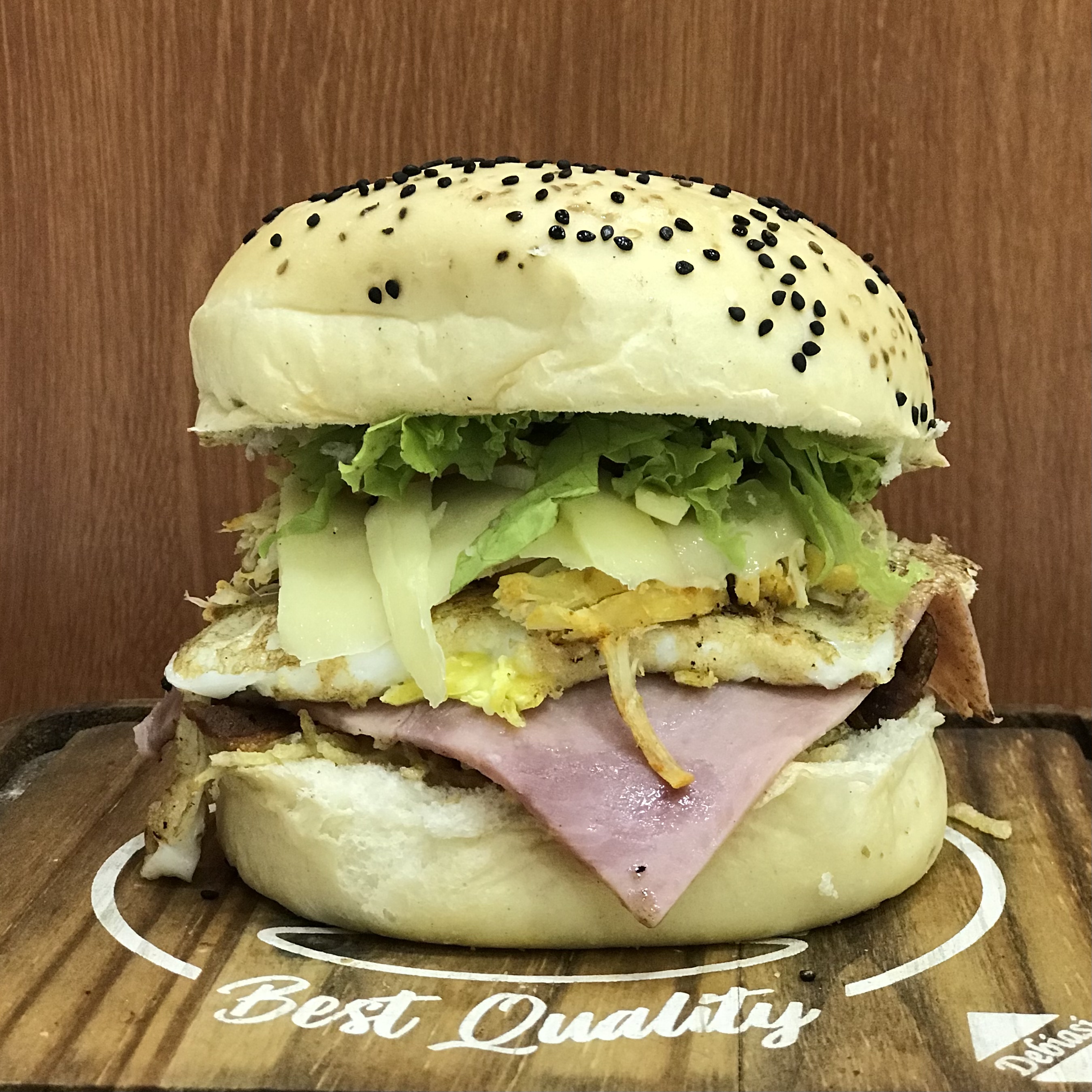PÃO BLACK, MOLHO ESPECIAL, CEBOLA CARAMELIZADA, BACON, QUEIJO PRATA, BLEND DE CARNES SELECIONADAS, E MOLHO BARBECUE E QUEIJO CHADDER.