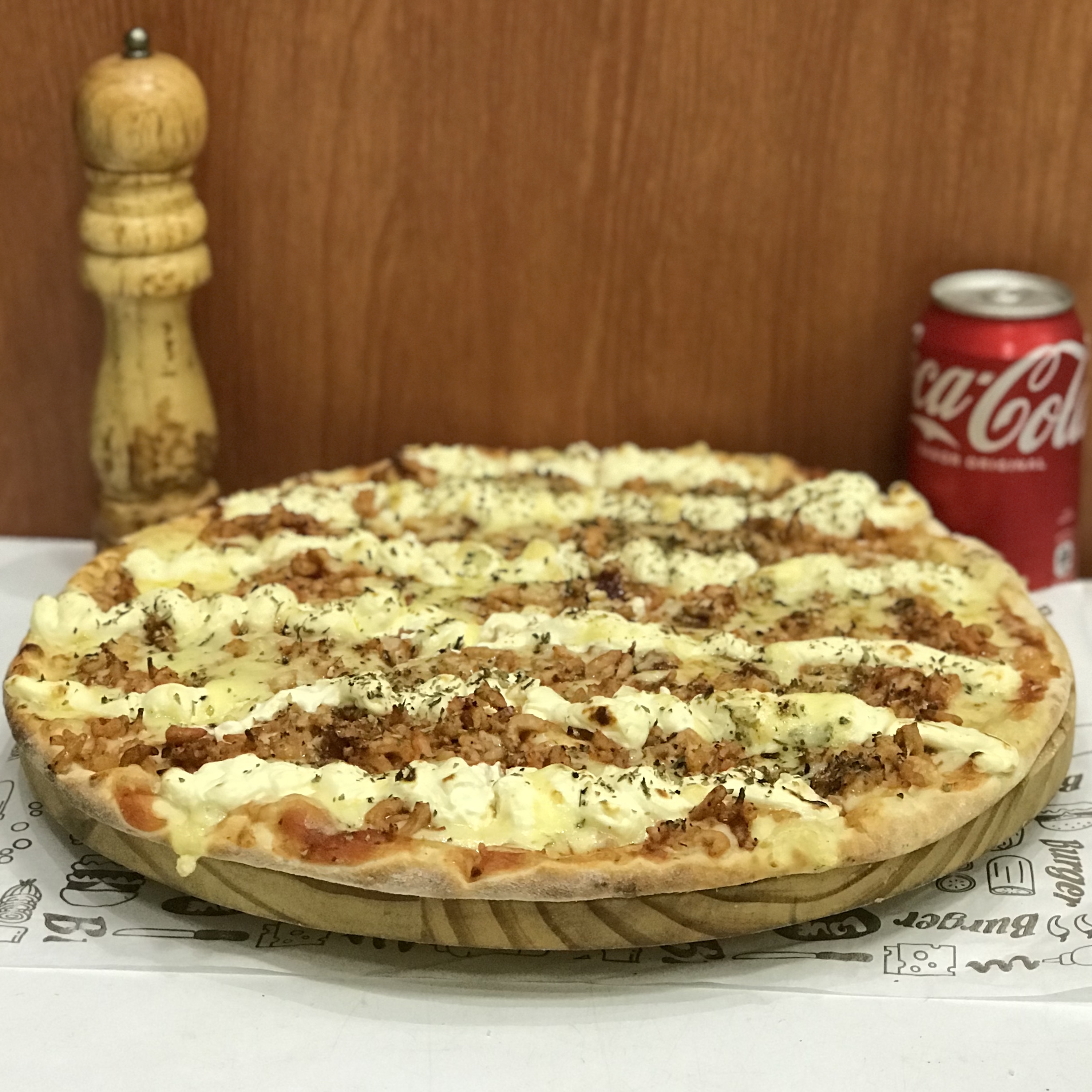 MUSSARELA, FRANGO, NACON, AZEITONA E ORÉGANO
