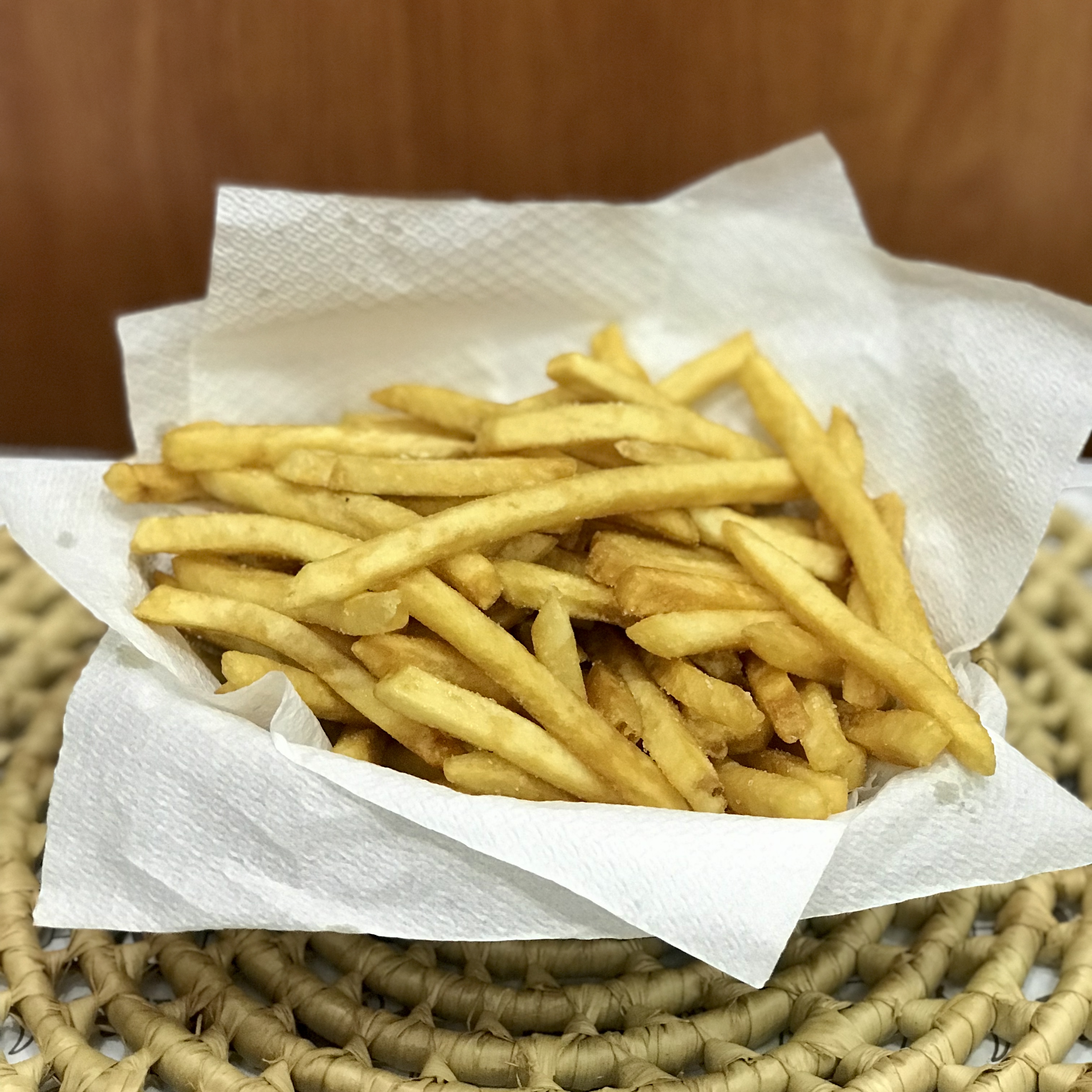 MOLHO RK,BATATA PALHA, PRESUNTO, OVO, FRANGO DESFIADO, MUSSARELA E VERDURAS.