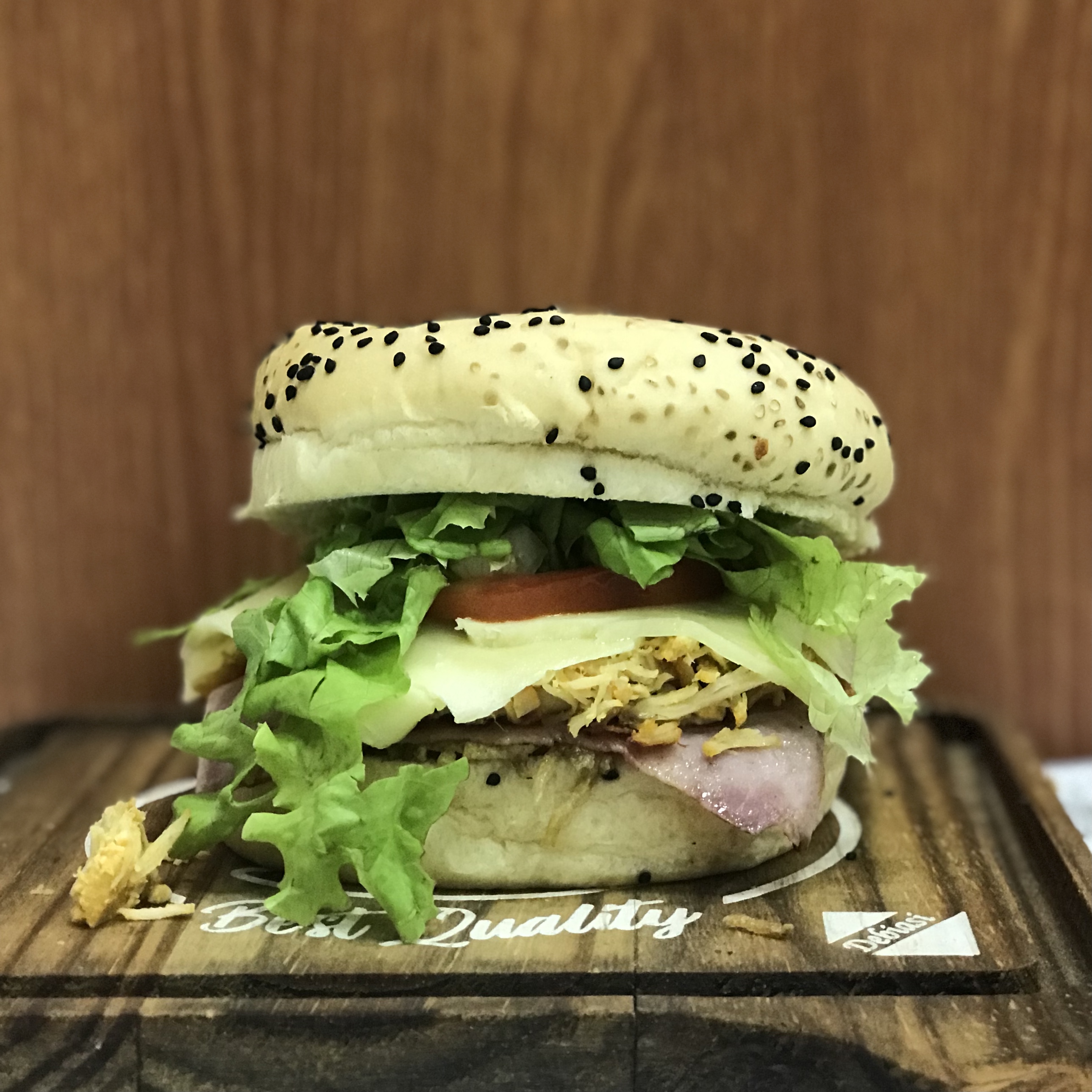 PÃO ROSE, MOLHO ESPECIAL, CEBOLA, QUEIJO PRATA, BLEND DE CARNES SELECIONADAS, QUEIJO E CHEDDAR.